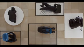 The video performance explores the body through its isolation in narrow contiguous spaces, all within a large area. That is, it enhances the concept of space within the space and how the body deals with objects within this isolated space, which prevents freedom of movement within those spaces isolated from each other.